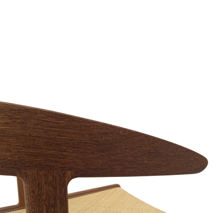 Sucupira, or natural oak structure, special single piece solid wood back and arm, seat in leather or fabric, metal points.