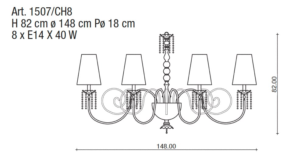 H 82 cm ø 148 cm Pø 18 cm - 8 x E14 X 40 W