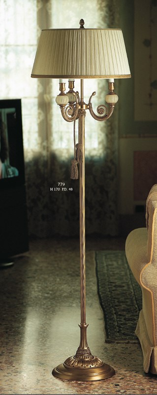 Piantana impero a 3 luci con 3 bocce in vetro di Murano, paralume conico