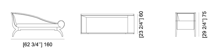 Dormeuse con struttura realizzata in legno di ciliegio sagomato. Seduta e schienale imbottiti con rivestimento in pelle o tessuto.