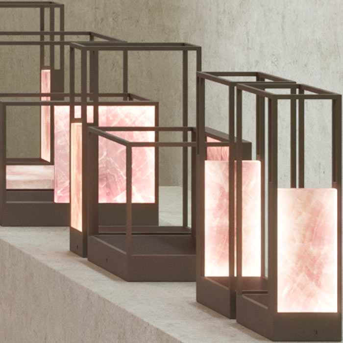 Himalayan salt blocks diffuser, LED lit, movement sensor switch & dimmer, with telephone charging function, optional bluetooth speakers, provided with direct power connection as well as cordless operated with rechargeable battery, metal structure.