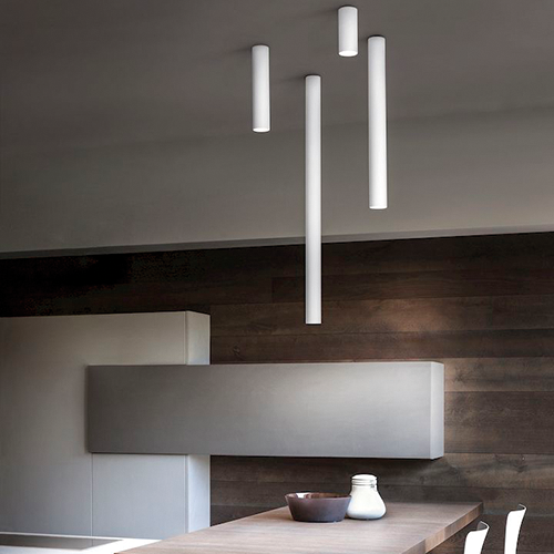 The a-tube family features several minimalistic ceiling and pendant light fixtures made of metal shaped like cylinders and available in various lengths and finishes. This slim, cylindrical pendant and ceiling light is perfect for use by itself or when arranged in clusters or rows. This modern fixture provides direct illumination.