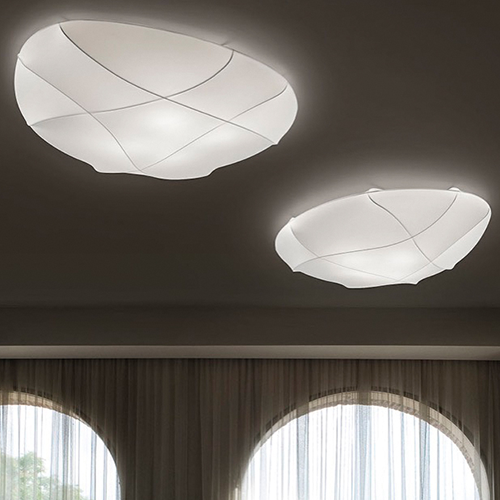Defined by its organic shape and crisp white color, the Millo wall/ceiling is a versatile light fixture that adds a unique design detail to any space. The frame of this modern lamp is made from metal that is formed and molded to create egg-like shape. Surrounding the frame is the white fabric shade which conceals the light sources. When illuminated, this Decorative light provides diffused, ambient light that is perfect for illuminating both residential and commercial settings. Available in three sizes, the Millo can be used as a solo fixture or arranged in a grouping to create a dynamic installation on the wall or ceiling.
