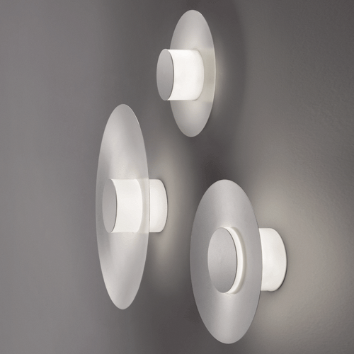 Named after the mythical god, the thor wall/ceiling light is a bold lighting fixture that creates customizable lighting effects that are similar to the different stages of the moon. The flat, round shade is made from metal and attaches to a glass cylindrical mount. The shade can be moved up and down the cylindrical mount allowing for the increase or decreas