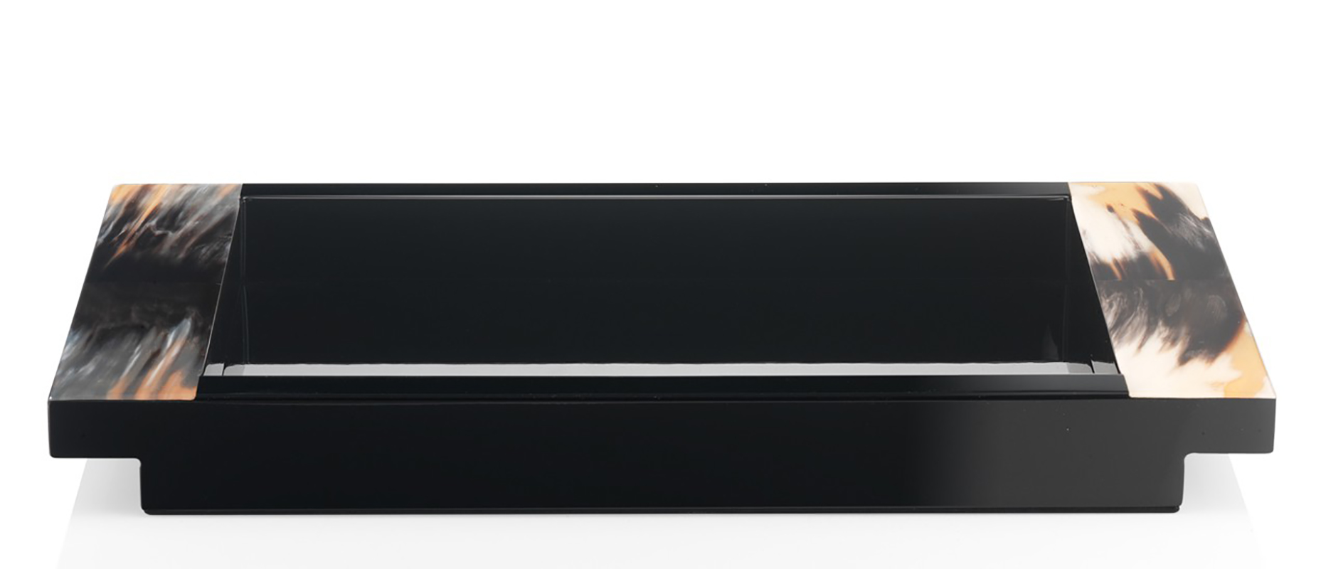 Vassoio in corno e legno laccato lucido.