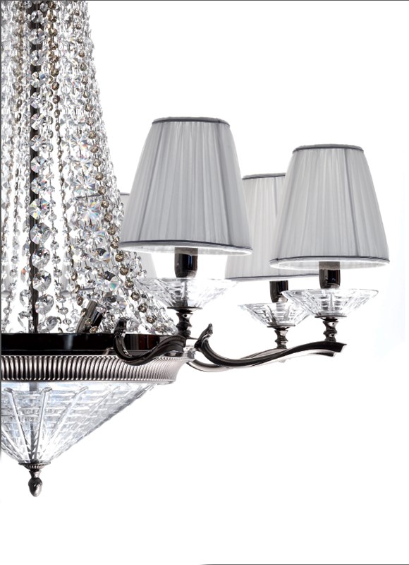 H 107 cm ø 112 cm Pø 18 cm - 8 x E14 X 40W - 4 x E14 X 40W (interne) Cromo Nero