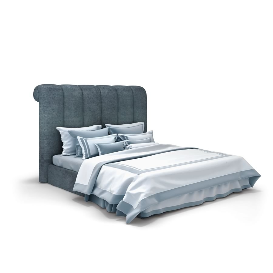 Struttura portante in metallo e legno. Testata laccata personalizzabile. Imbottitura in poliuretano espanso rivestito da tessuto accoppi- ato protettivo. Rivestimento giroletto in tessuto o pelle. Disponibile con rete a doghe, pannello or- topedico rivestito o contenitore con rete a doghe.