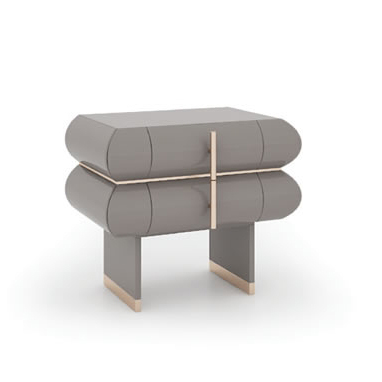 Comodino in legno. Disponibile in diverse essenze secondo campionario o laccato in colori RAL. Inserti in metallo: effetto bronzo, oro, cromo, verniciato in colori RAL.
