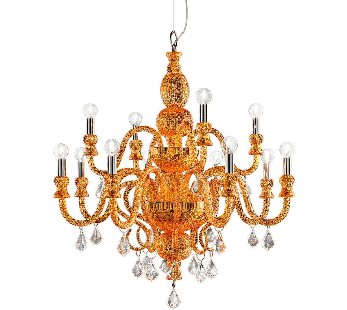 Chandelier orange carved crystal, metal with chrome finsh, Swarovski Elements pendants. Available in different dimensions and colours. Opera Classic Collection.