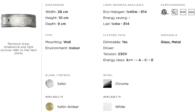 Wall lamp in satin glass and metal with chrome finish. Opera Classic Collection.