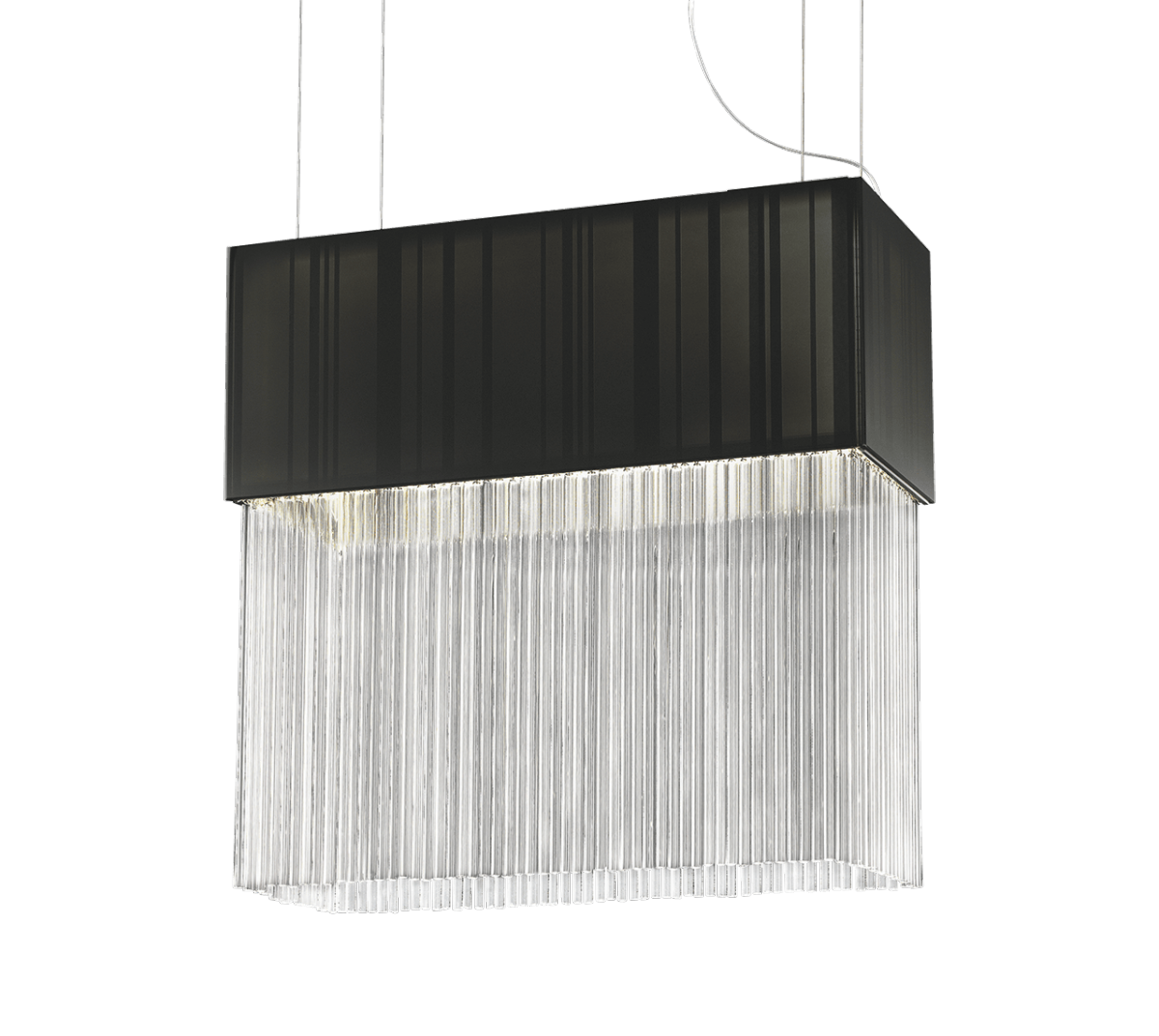Pendant with black screen printed glass diffuser and fumè decorative glass pendant. Incanto Modern Collection.
