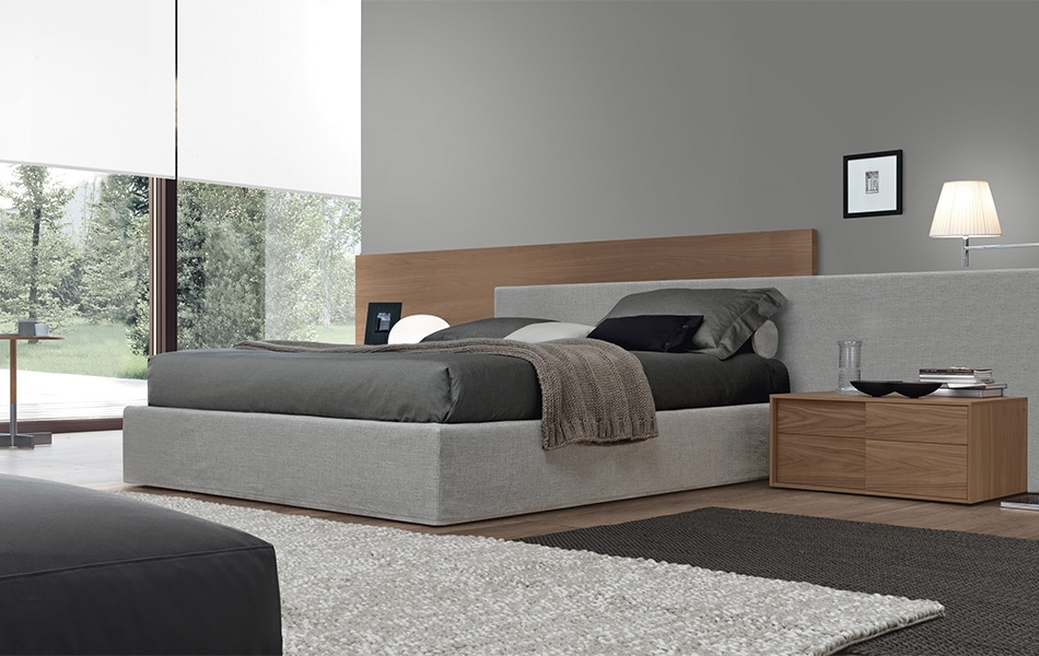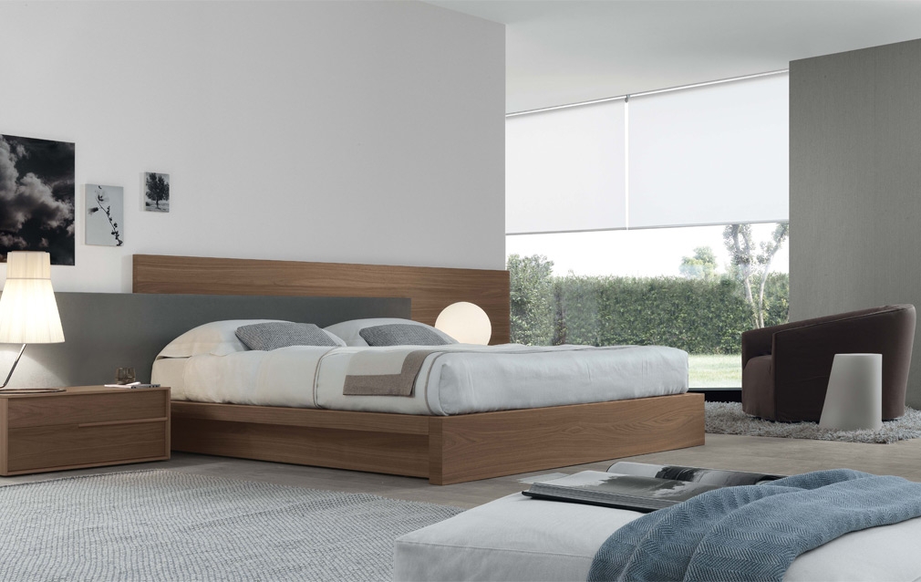 Двуспальная кровать с мягким изголовьем. Деревянная или мягкая кровать. Доступно с или без хранения. Щитовые панели из дерева или мягкие. Отделка: орех, термос, матовый и глянцевый лак.