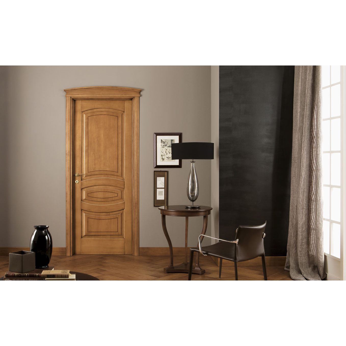 Leaving its mark, playing with materials, enhancing them through refined and highly skilled craftsmanship. The rich inlay in ebony-bordered rosewood, along with aged finishing, bestows an antique charm on the door. A classical style which opens spaces to any personality.