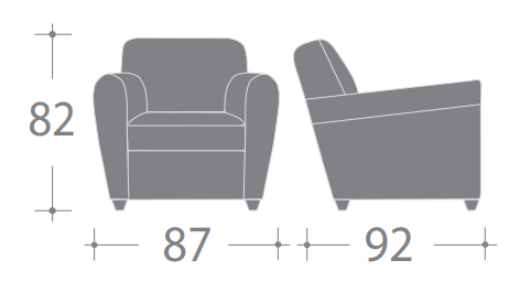 Struttura in legno, molleggio con molle coniche. Imbottitura in poliuretano espanso a densità differenziata, rivestito da falda acrilica. Cuscino seduta in piuma con inserto in poliuretano. Piedi in legno. Wood frame, springiness with conical springs. Different densities polyurethane foam filling, covered with acrylic padding. Seat cushion filled with goose down and polyurethane foam inset. Wood feet.