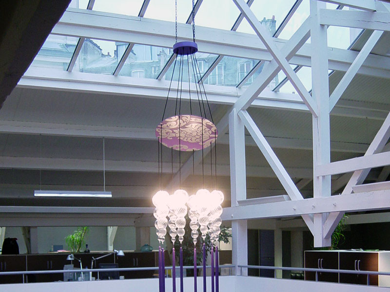 Chandeliers with 8, 10 and 12 lights, with lacquered wood structure in requested colours. Different glass shapes and sizes available. 40 cm or 70 cm tassel included.