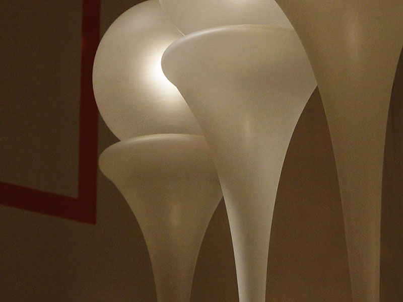 Pendant lamp, in clear or frosted hand-blown glass with 40 cm long tassel included. Also available with wall and floor support.