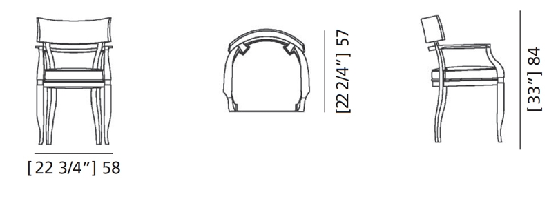 Poltroncina in legno massello di ciliegio con schienale sagomato e seduta imbottita.