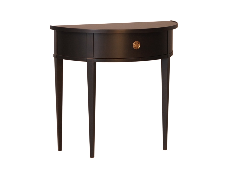 Tavolino consolle a mezza luna realizzato in legno di ciliegio con cassetto frontale.