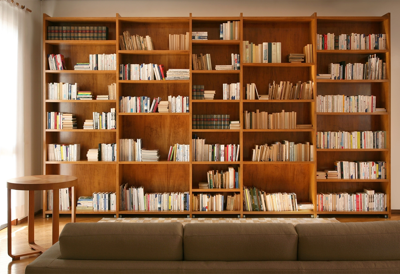 Proposta di Libreria Maschera componibile con struttura a 3 vani, ripiani regolabili e cornice di chiusura con ante a battente: 3 in legno e 3 in vetro.