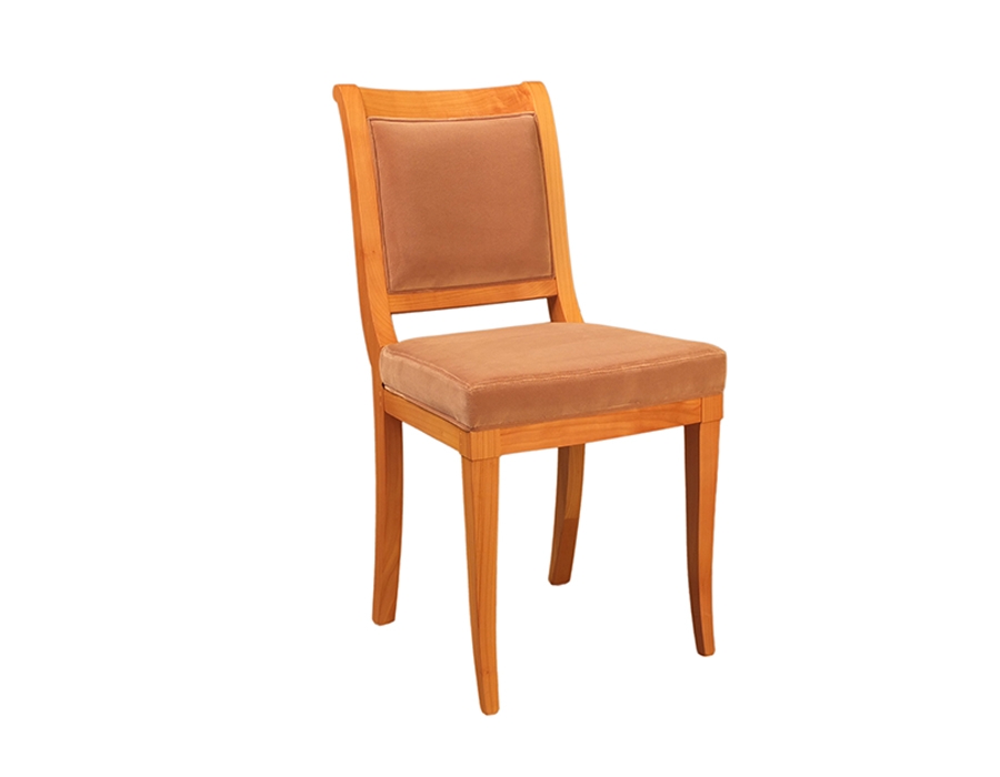 Sedia in legno di ciliegio con seduta e schienale sagomato imbottiti.