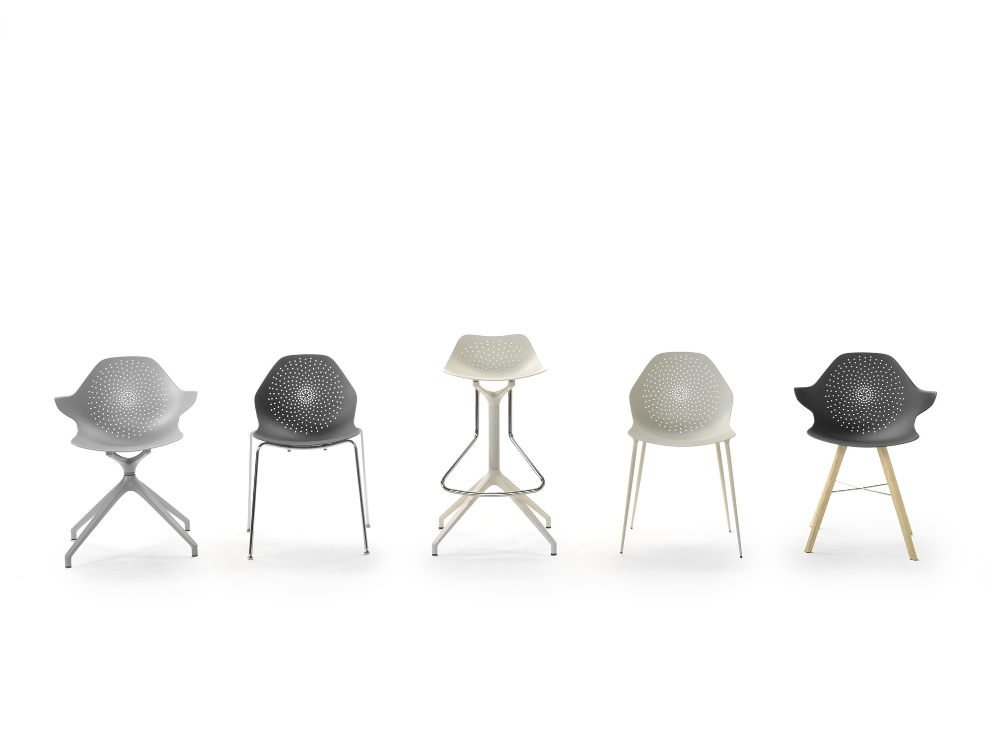 Klera chair reflects the spirit of a never expected contract dimension, which changes mood accordingly to chosen finishes. From plain and elegant zen blue, to delicate English rose, colours and bases range make it easy to imagine unlimited combinations to give style to the location, both professional and living. A soft and smart history of romanticism.