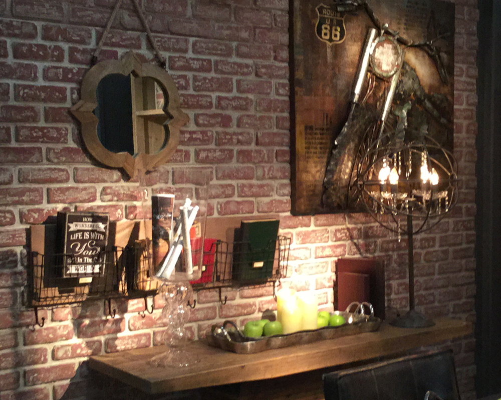Decorazione da parete rettangolare in legno, con portadocumenti e porta oggetti.
