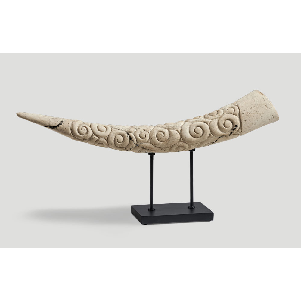 Scultura in agglomerato di travertino con supporto in metallo color Ferro Brunito