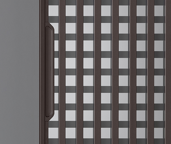 Partition, boiserie, decoration: Daimon, inspired by typical Japanese partition, clearly recalls its aesthetic and functional qualities, in addition to graphical and architectural ones. Rimadesio reinterprets an ancient solution through the intersection of vertical crosspieces and horizontal lines silk-screen printed on glass panels.An original and captivating proposal in addition to the great variety of sliding panels as part of Rimadesio Collection.