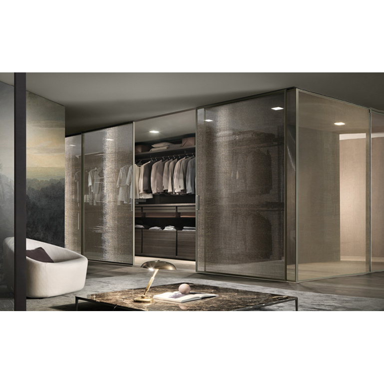 Dress bold is a system that creates highly customised walk-in closets with the option of compositions made to order for linear, corner and C-shaped solutions. It offers two aesthetical options: with visible uprights or with wall panels, available in lacquered glass, mirror or wood with backlighting.The accessories, which can be freely placed along the wall upright by means of a patented expansion fixing system that requires no holes, include: shelves and bases, clothes rods, tilting clothes racks, drawer units, trouser racks and draw-out trays.