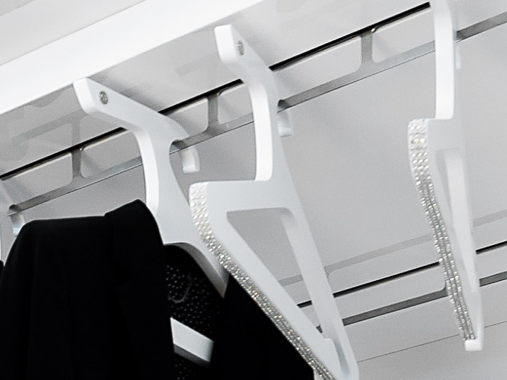 Comoda, spaziosa e funzionale la stanza armadio Opera 30 che presenta un insolito ed originale progetto della lampada centrale che magicamente si trasforma in una zona make-up completa di specchio e vani accessori. Un momento unico per la vanità sia femminile che maschile, che rende magica questa proposta, I vari spazi della stanza armadio sono curati attentamente in ogni dettaglio con soluzioni varie e particolari meccanismi elettronici quali nastri trasportatori porta abiti, ante girevoli per la suddivisione delle stagioni, vani per cinture, foulard, borse ed eleganti cassetti che completano una multifunzionalità tutta da scoprire.