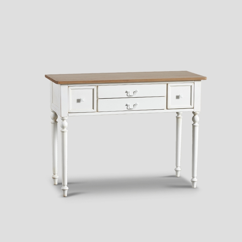 Consolle 4 cassetti, in legno finitura laccato Bianco Vissuto, top in rovere finitura Vintage Chiaro
