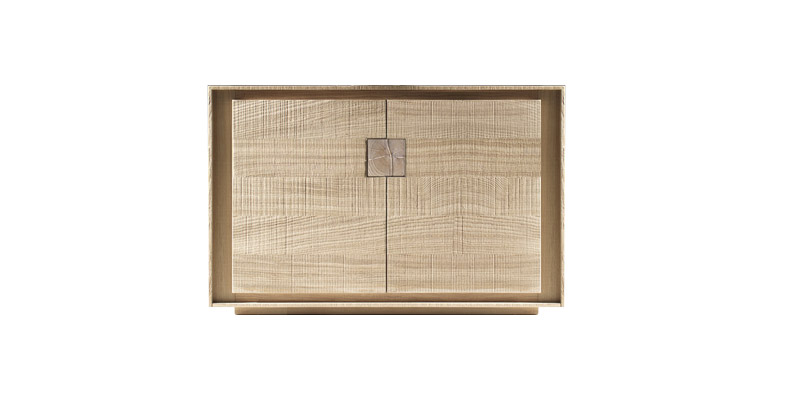 Emozioni della natura - collezione realizzata in rovere effetto taglio sega. La superficie di questi mobili si presenta irregolare, con solchi profondi e perpendicolari alle venature del legno. Tali incisioni trasversali imitano i segni che le seghe lasciano quando si sezionano i tronchi e danno un effetto grezzo al mobile, lasciando al tatto una sensazione di legno naturale.
