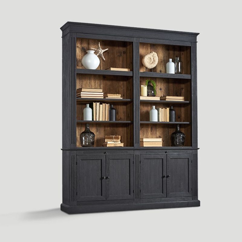 Libreria in legno vecchio riciclato con interno finitura Naturale, esterno laccato e cerato a pennello color Lavagna. Elemento 4 porte