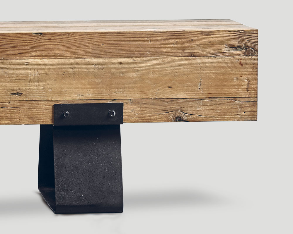 Panca (consolle) bifacciale con struttura in legno vecchio riciclato base in metallo finitura Ferro Brunito