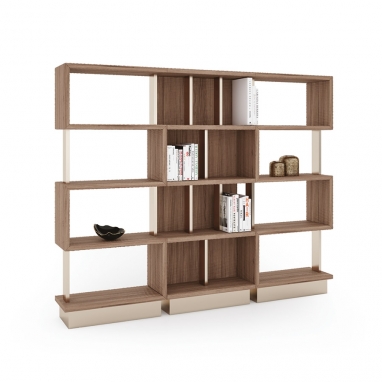 Libreria in legno. Disponibile in diverse essenze secondo campionario o laccata in colori RAL. Inserti in metallo: effetto bronzo, oro lucido, cromo, verniciato in colori RAL.