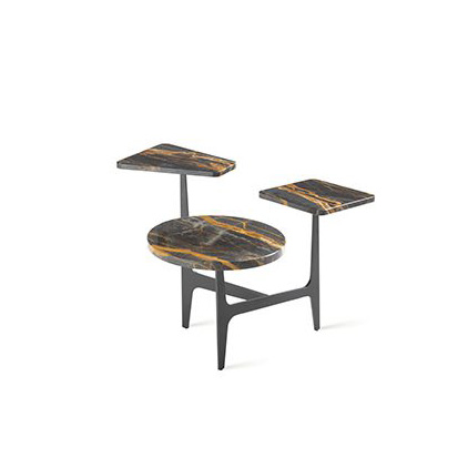 Low table with top in wood or marble and base matt lacquered metal colour.