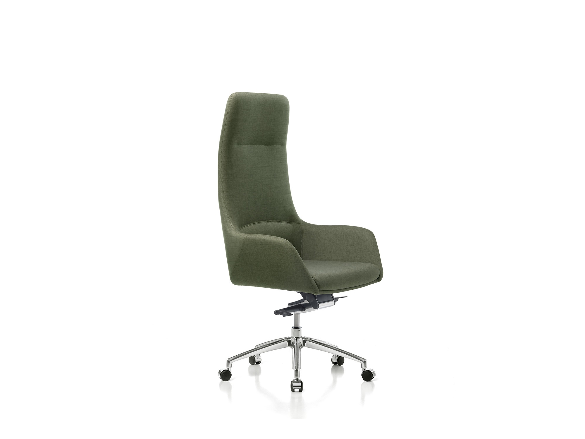 Total comfort and aesthetic balance research transform office chair into space focal point where it is located. Evolution of space dedicated to business, which becomes welcoming and human. The structure supports perfectly the body and favours relax, promoting a work concept, which aims to people wellness.