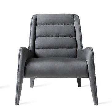 Poltrona imbottita rivestita in tessuto o in pelle. Gambe rivestite con tessuto o pelle.