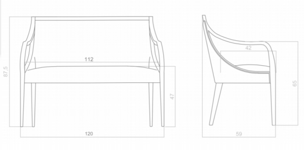Chair in contemporary design with a solid beechwood with the upholstering padded on the pedestal. The seat is provided with a carved plywood birch panel, with lux high quality foam, which is below covered with a non-woven fabric bolt with a grammage of 100 gsm. The seat is upholstered with an edging, which vìcan be of the same colour of or as opposed to the colour of the fabric.