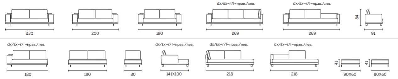Структура из дерева. Подушки сидений в недеформируемом пенополиуретане с различной плотностью. Перо назад подушки. Подвеска на эластичных перекрещенных ремнях. Полностью съемный. Вариант кровати не предусмотрен