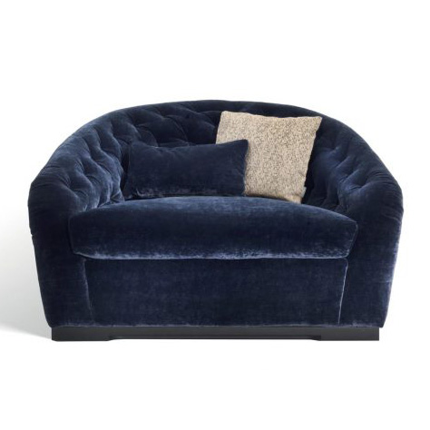 Poltrona imbottita con rivestimento in tessuto o pelle.