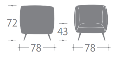 Struttura in faggio e multistrato. Molleggio con cinghie elastiche incrociate, interamente ricoperte e con anima in polipropilene. Imbottitura in poliuretano espanso indeformabile ad alta densità differenziata ricopeta da falda acrilica. Piedini in legno massello verniciato. Beech and multilayer wood frame. Support with intertwoven elastic webbing, completely covered and reinforced with polypropylene. Padding in different density non-deforming polyurethane foam coated with acrylic layer. Feet in varnished solid wood.