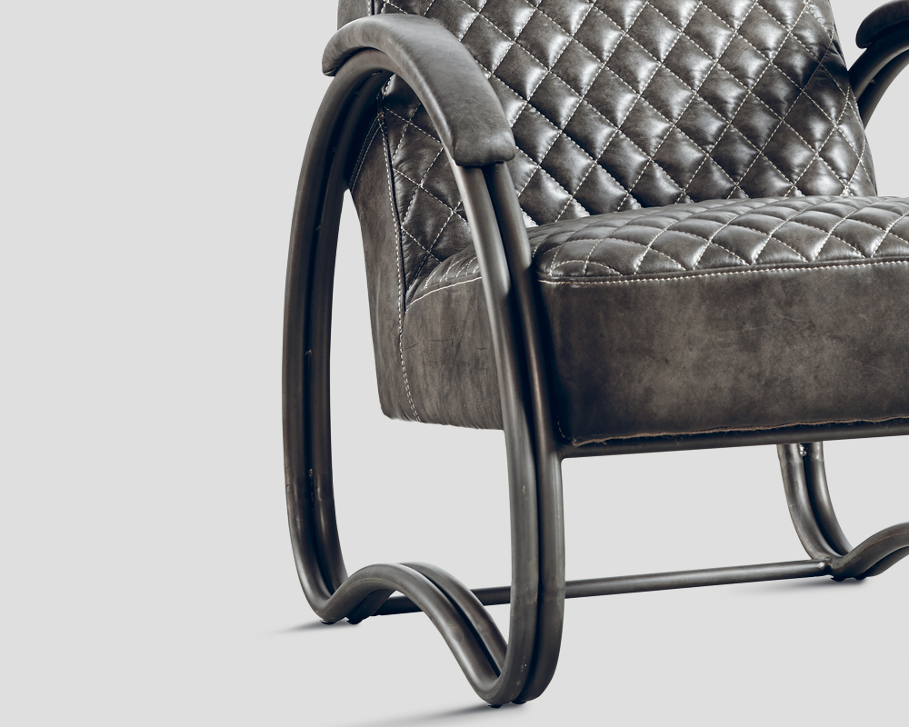Poltrona in vera pelle, rivestimento color Ebano Chiaro, struttura in metallo color Ferro Naturale