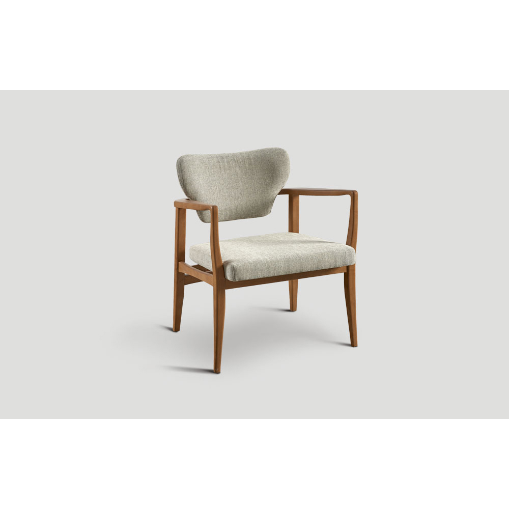 Poltroncina con struttura in faggio finitura legno Vintage con sedile e schienale in tessuto color Biscotto