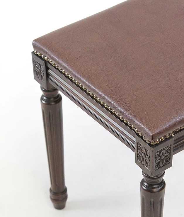 Резной пуф в классическом стиле из массива бука с накладным сидением с облегченной обивкой, что позволяет использовать его для хранения сумок.