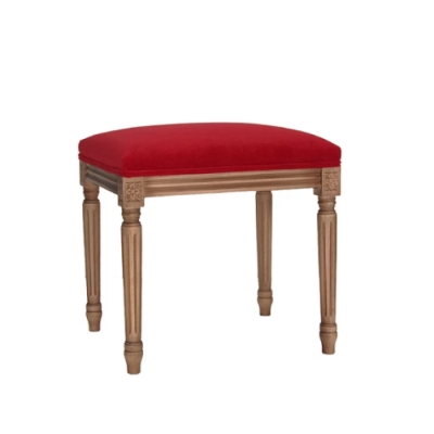 Classic ottoman with a solid printed and carved beech wood structure. The seat is padded on a pedestal, supported by elastic belts, with lux high quality foam and is upholstered below with a non-woven fabric bolt with grammage of 100 gsm. Colours and fabrics can be customized to the client's requirements.