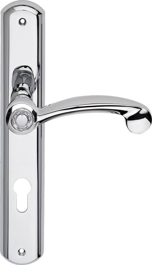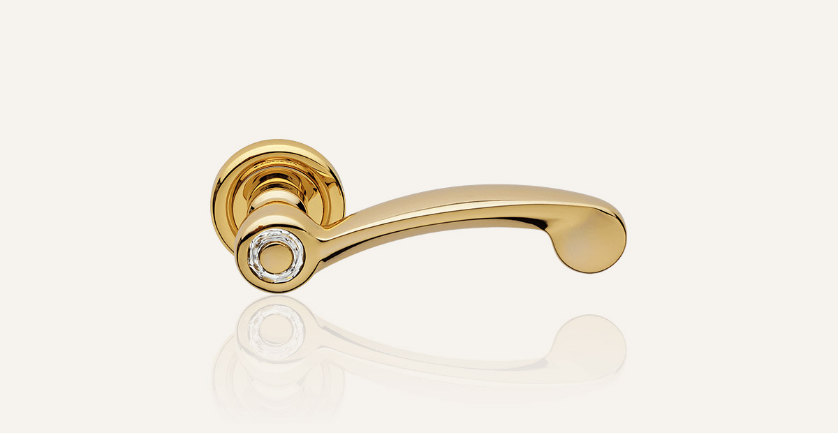 Il concetto di maniglia classica viene riletto in chiave moderna e arricchito da dettagli contemporanei come il ricciolo dell'impugnatura e il cristallo Swarovski® di forma squisitamente circolare.