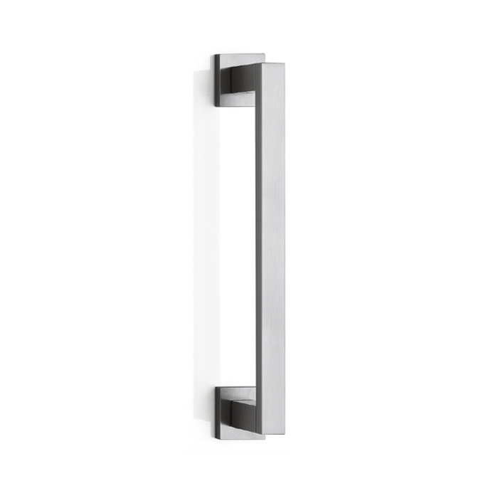 Diana è un maniglione in versione diritta e zancata con rosetta quadrata oppure senza rosetta. Disponibile nella stessa collezione anche i pomoli centrali, la maniglia disegnata dallo studio Olivari nel 2007 e le versioni Guilloché del 2016.
