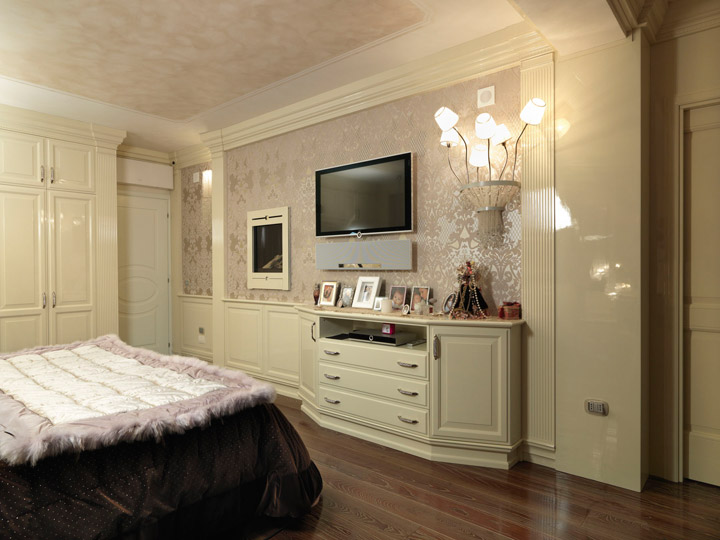 Il total living di Brummel declina la linea stilistica di ogni collezione nei vari ambienti domestici rendendo armonico e uniforme tutto l’arredo della casa. La proposta Grand Gourmet per la zona notte presenta un’armadiatura importante abbinata ad una elegante boiserie completa di comò. Il letto, maestoso e ricercato, è il protagonista assoluto.