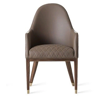 Poltroncina con gambe in legno. Seduta e schienale imbottiti. Rivestimento in tessuto o pelle.